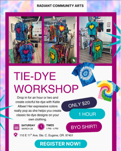 Radiant Community Arts is a non-profit organization offering art classes, gallery exhibitions, and community events based in Eugene, Oregon.